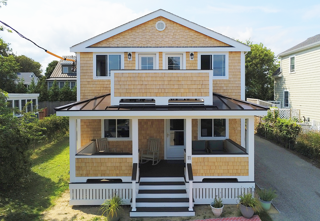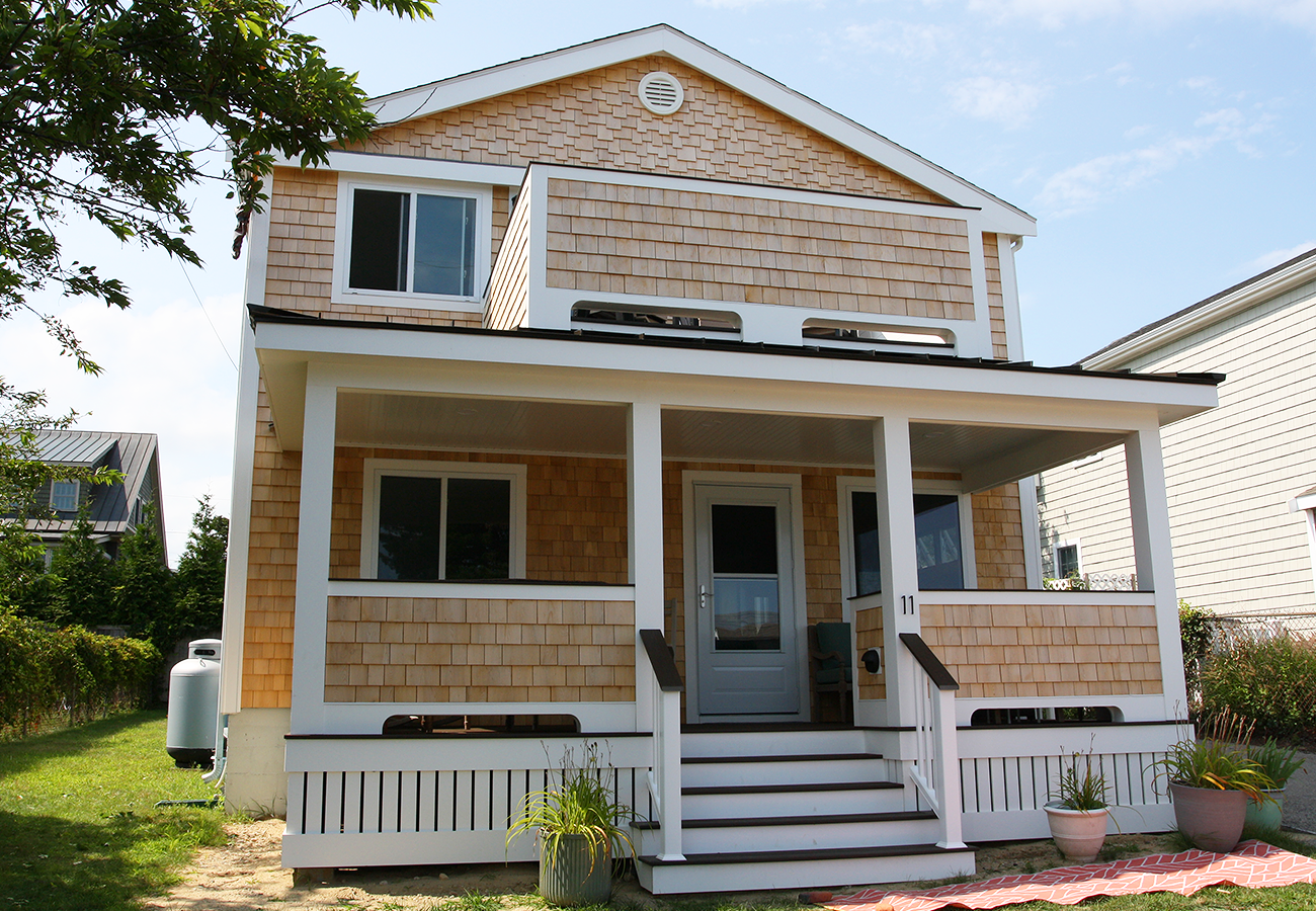 A shingle-style facelift with a second story deck to capture a glimpse of the ocean views.